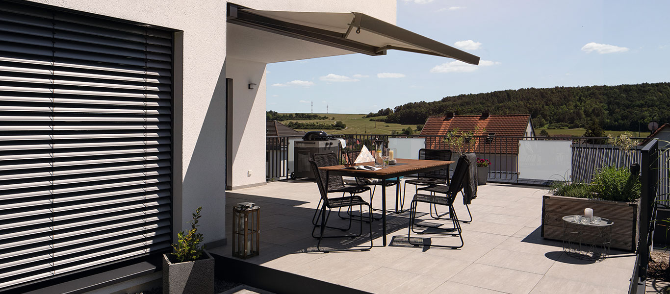 Sie sorgen nicht nur für angenehmen Schatten auf Balkon und Terrasse, sondern bestechen auch durch ausgefallene Technik und ästhetisches Design. Die große Auswahl an Farben und Stoffen ermöglicht eine harmonische Abstimmung mit jeder Fassade.